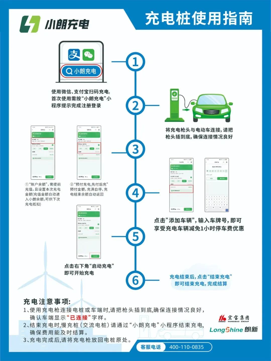在该超充站,新能源车主使用微信、支付宝扫码即可充电,车主首次使用按“小朗充电”小程序提示完成注册登录,点击“添加车辆”,输入车牌号码还可以享受减免 1 小时停车时长。