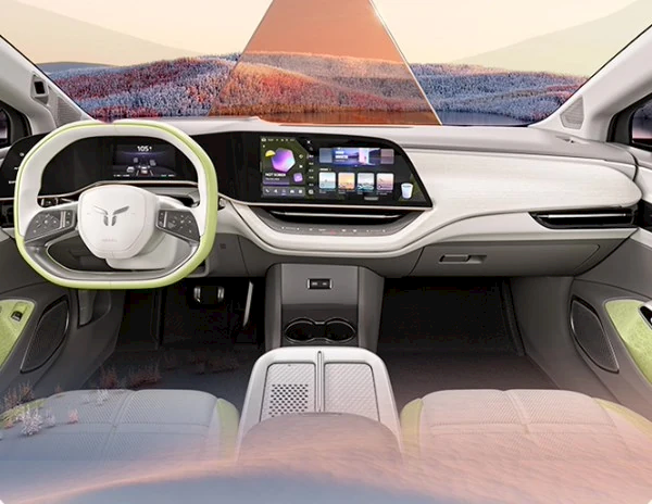 车内配备了6英寸+15.5英寸的曲面双联屏幕,以及ARHUD抬头显示系统,车机搭载骁龙8155芯片。