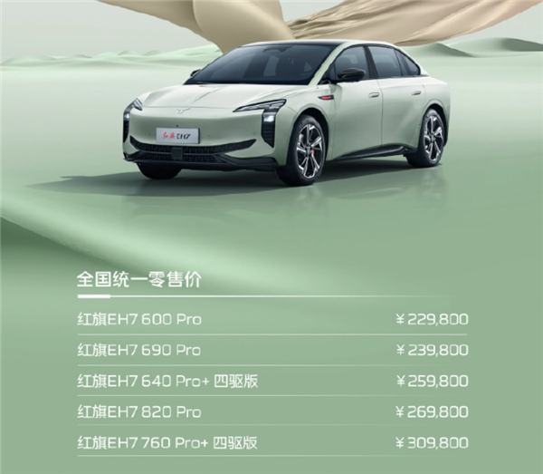 快科技3月20日消息,红旗全新中大型纯电轿车EH7正式上市,新车共推出5款配置车型,售价区间为22.98-30.98万元。