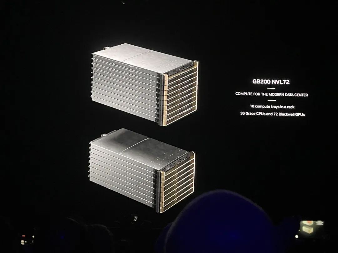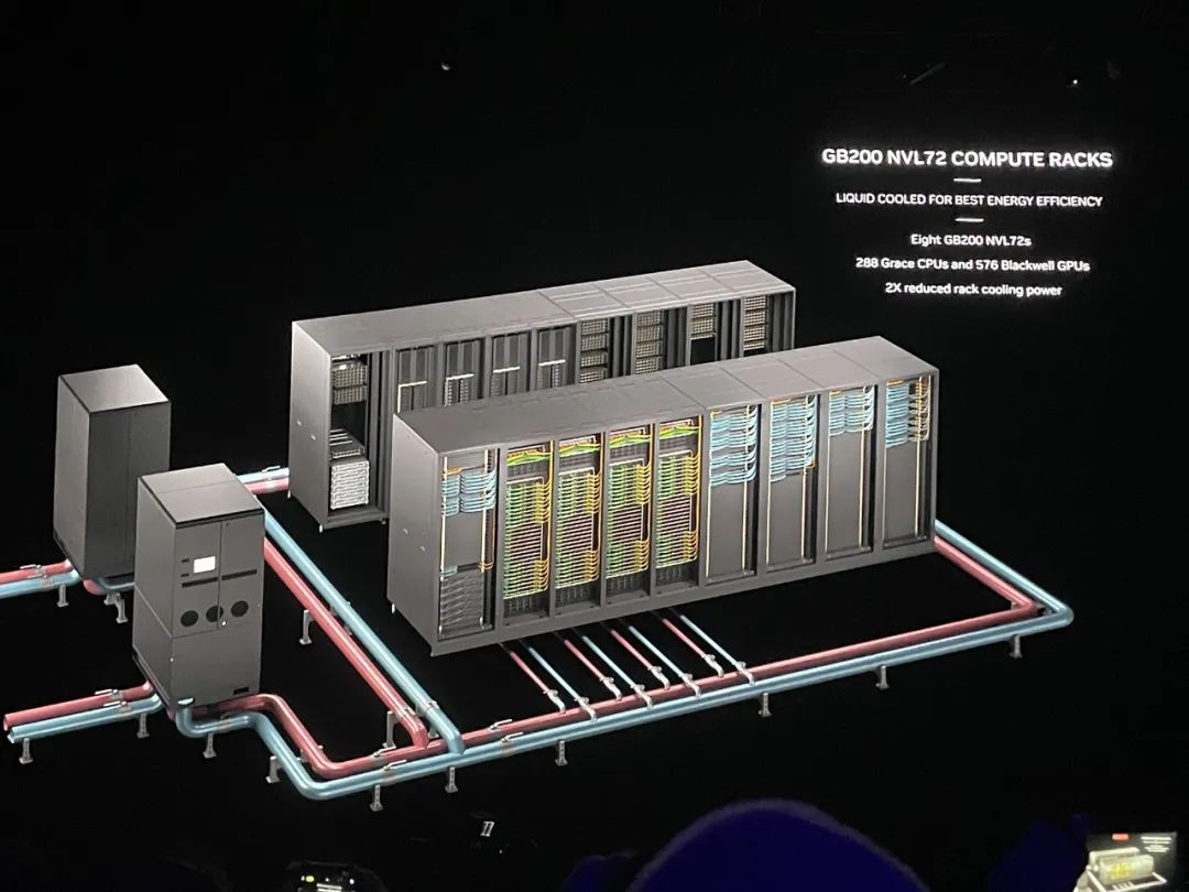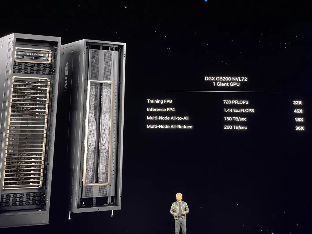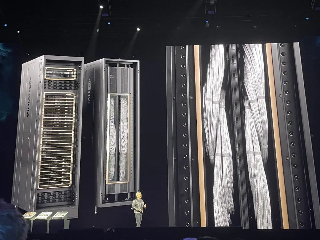 黄仁勋说,这是世界上第一台单机架 EFLOPS 级机器,整个地球也不过两三台 E 级机器。