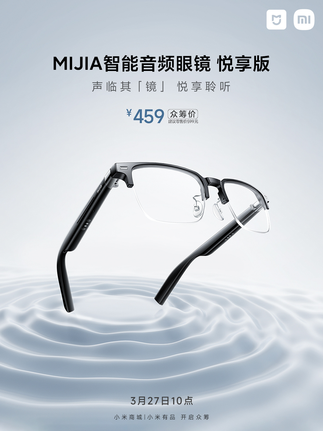 IT之家 3 月 27 日消息,小米有品上架了?MIJIA 智能音频眼镜 (悦享版),建议零售价 599 元,众筹价?459 元,今日 10 点正式开启众筹。