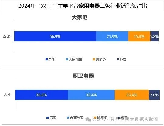 最新数据显示,京东在家电领域持续巩固自身优势地位,销售额占比达44%,排名位居行业第一。同时,京东依靠高效物流以及完善的售后服务体系获得广泛认可,大家电市场销售额占比56.9%,厨卫电器市场销售额占比36.6%,均在行业领跑。