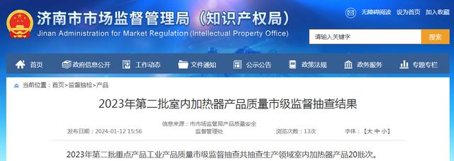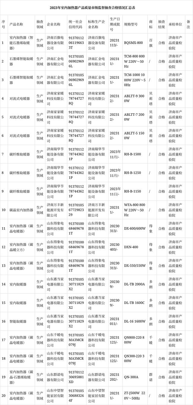 2023年第二批重点产品工业产品质量市级监督抽查共抽查生产领域室内加热器产品20批次。