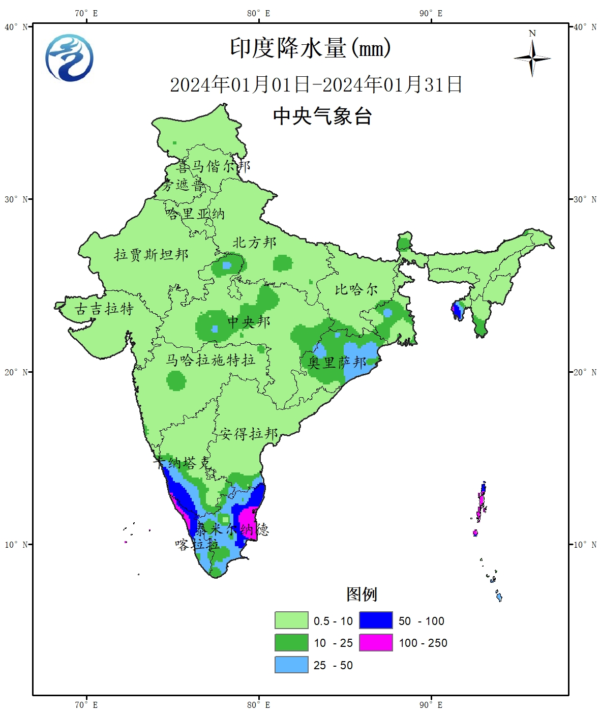 图62024年1月印度降水量