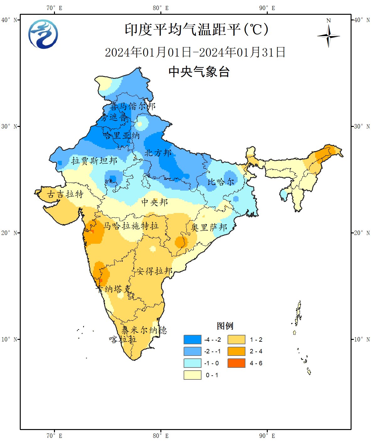 图52024年1月印度平均气温距平