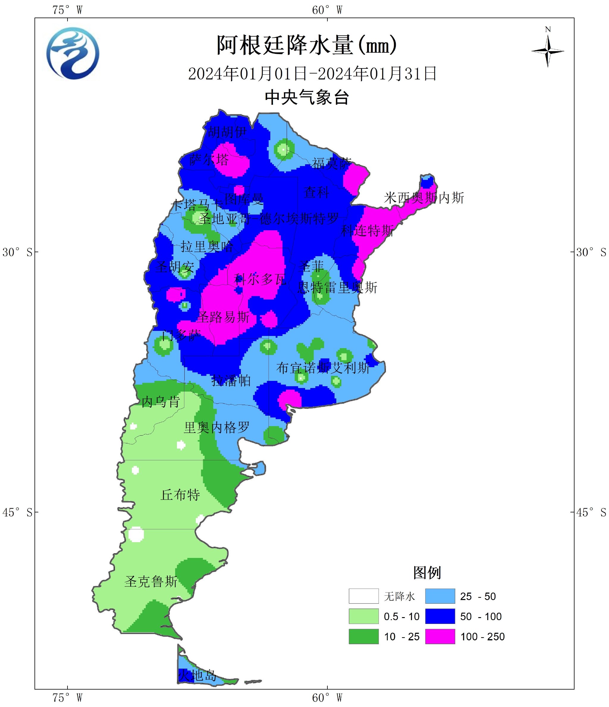 图4 2024年1月阿根廷降水量